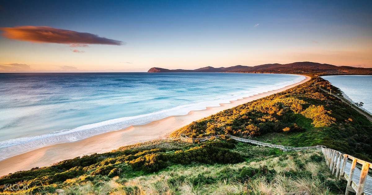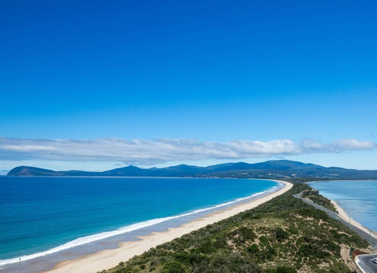 穿过霍巴特市区南行,抵达轮渡码头乘坐轮渡约20分钟后抵达布鲁尼岛,沿着海岸线行驶,穿梭于森林间,前往著名的南北一线,这条狭长的小径双月湾(The Neck), 如同细线一般将布尼岛的南部和北部链接起来,登上楚格尼尼公主瞭望台,两侧都是一望无际的大海。这里也是企鹅归巢的栖息地。